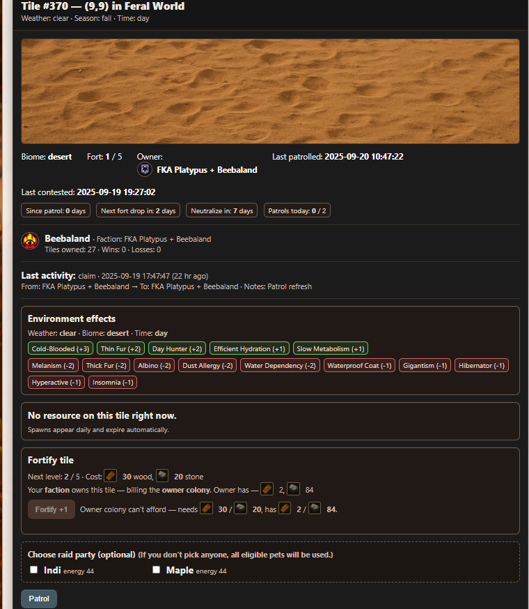 []If you own the tile, your colony pays. If a faction-ally fortifies and has no selected colony, the owner colony pays.